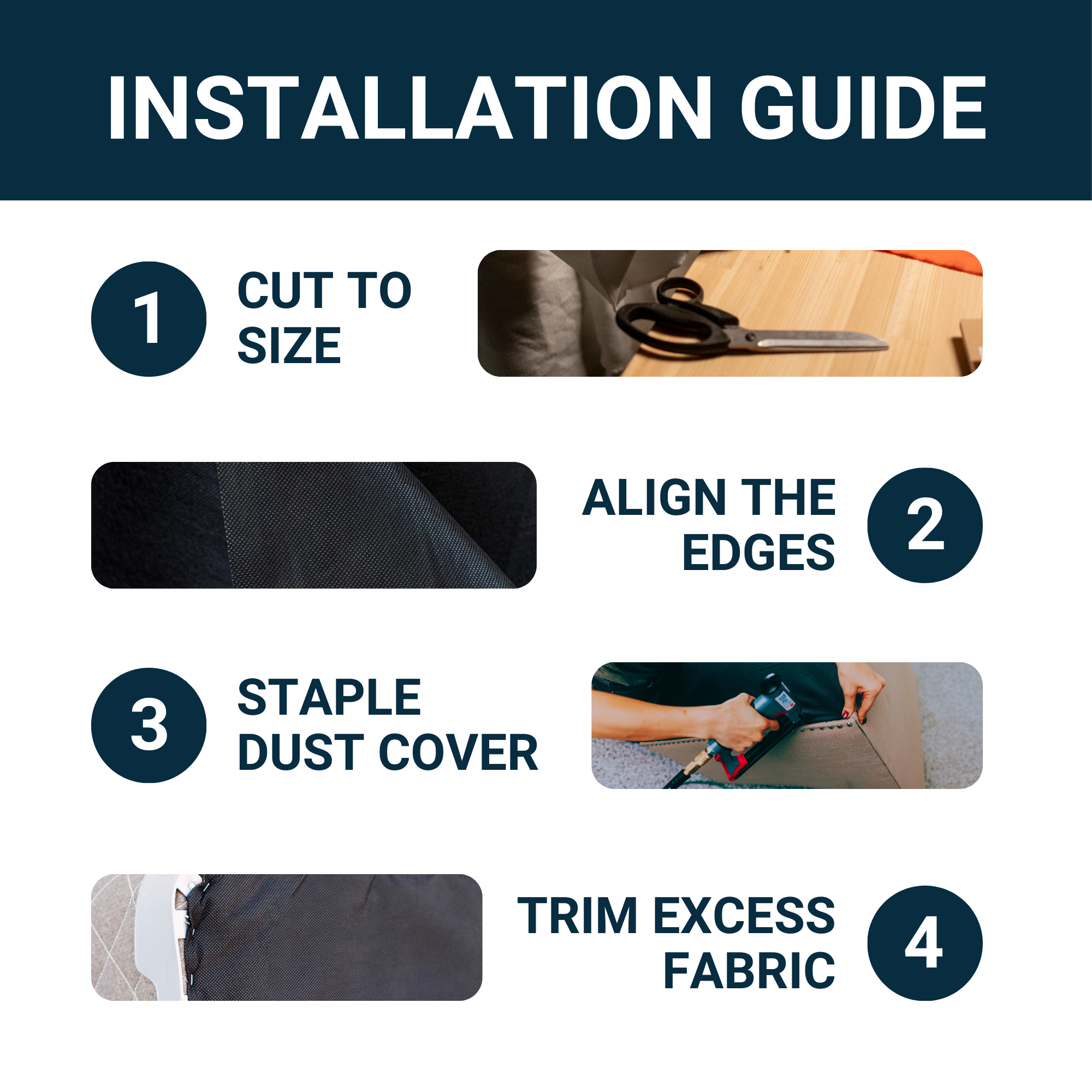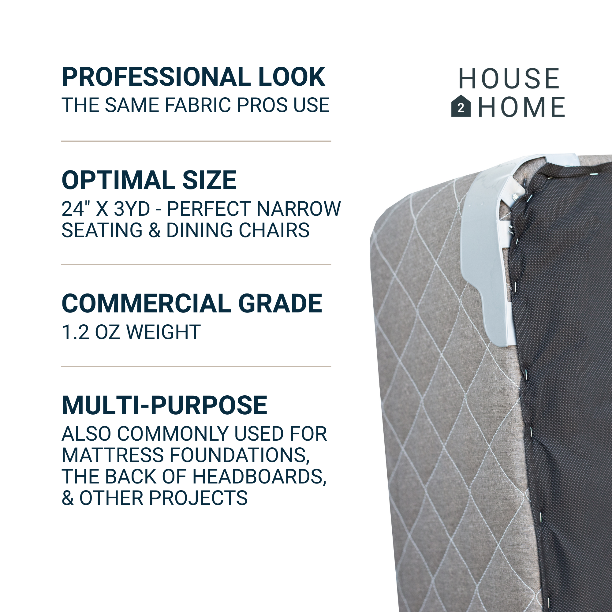 Achieve a professional and clean finish on your furniture with the House2Home Upholstery Black Cambric Dust Cover. This commercial-grade dust cloth is the perfect solution for both finishing new upholstery projects and replacing worn, torn covers on existing pieces. Installing a piece of cambric instantly elevates the quality of your furniture, ensuring the inner frames and springs are cleanly concealed, and the underside is protected from dust and debris. It is the cost-effective way to restore the quality look of your well-loved pieces.