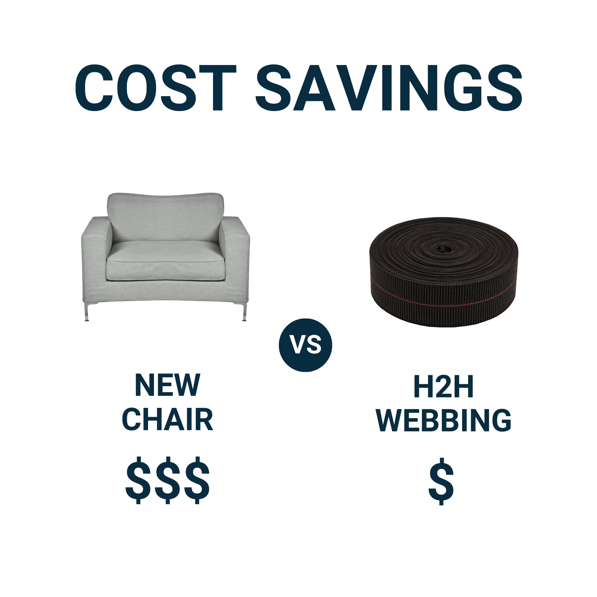 ECONOMICAL - If you've ever called around to get quotes on how much it costs to have seat webbing replaced, you know that it's not a cheap job. Instead of spending hundreds of dollars buying a new chair or paying someone to fix it, you can tackle the job yourself for a fraction of the cost